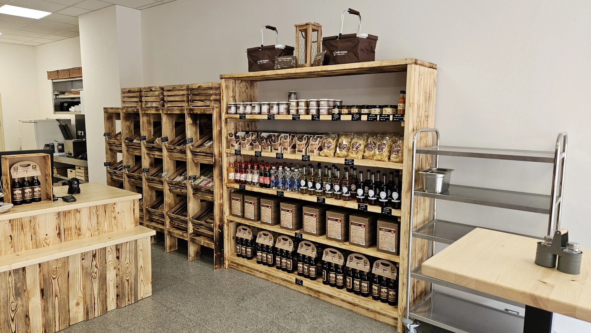 V prodejně je nabízen i doplňkový sortiment, jako je např: naše BIO a farmářské JERKY, naše solené brambůrky, naše pivo BIZON v balení pro třech kusech (polotmavý speciál), BIO mošt 5 litrů z jablek z ekologických sadů a mnoho dalšího.